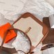 這款 HERMÈS Trim 肩背包,以經典 金棕色 Barenia 小牛皮 搭配 米色帆布 製作,展現休閒與高雅兼備的氣質。極簡的 Hobo 包型線條俐落,中央以 金色金屬扣與皮革拉帶 裝飾,細節低調卻精緻。容量實用,無論日常或通勤皆完美適用。隨附 原裝 Hermès 防塵袋,保存完整,收藏價值極高。