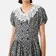 【蛋植物古著】月華蕾絲領短袖印花古著洋裝 - 洋裝/連身裙 - 其他人造纖維