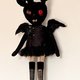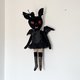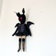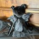 這款娃娃是一件真正的藝術品! 她的形象靈感來自巴黎紅磨坊的氛圍:優雅的天然絲綢洋裝、帶羽毛的高頂禮帽和性感網眼襪。 帶鐵絲的耳朵和翅膀讓您可以賦予它們任何形狀,表達這個小吸血鬼的心情。 填充合成填充物和少量金屬顆粒,以獲得令人愉悅的重量。