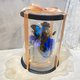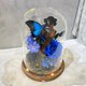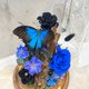 英雄翠鳳蝶標本、永生玫瑰花、永生大飛燕草、繡球花、兔尾草、索拉花、永生葉材等