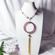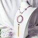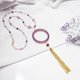 鍊身以紫鋰輝佐紅寶石設計,圓、方珠型體現**天圓地方**之美,寶石**紅中帶紫**,優雅貴氣。