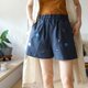 Yinke手工印花亞麻藍色星球/小山口袋短褲 - 女短褲/五分褲 - 棉.麻 藍色