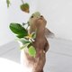 純手捏喜歡你看著我的樣子深情熊陶偶/擺飾/乾燥花器 - 花瓶/花器 - 陶 咖啡色