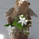純手捏喜歡你看著我的樣子深情熊陶偶/擺飾/乾燥花器