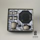 - 【赤壁賦茶具禮盒】 取材國立故宮院藏《金武元直赤壁圖卷》,再現經典風華。「鑄墨」融炭如潑墨藝術,「岩褐」礦物再現山石質感。壺紐雕刻巍峨高山,壺身鐫刻「赤壁賦」與「蘇子」之名。茶海細緻勾勒山岳與水紋,呈現赤壁壯麗險奇之景。