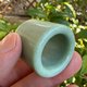本件岫玉板指,高3公分,玉質溫潤細膩,呈現柔和青綠色調,局部自然礦斑為原石生成特徵,非瑕疵,反而增添真實與把玩韻味。整體造型圓正厚實,邊緣拋光細緻,佩戴舒適,亦適合文房陳設與文玩把賞。岫玉向以親民實用、易養潤著稱,是入門收藏與日常配戴的理想選擇。