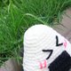 擬人化飯糰,表情萌爆,紫菜的位置看上去像是把飯糰封住了嘴一樣,然後飯糰拼命地想張口說話。我一邊織的時候一邊腦補了一齣大戲了,哈哈哈。小小的一隻,遠看還真有點以假亂真呢。