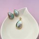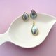 這三顆馬貝珍珠特點在於星空藍主色調及炫彩光伴色,像極了油畫裡的色彩,讓人一眼望穿星河。耳環含銀邊小直徑約16.4mm,吊墜含銀邊小直徑16.8mm,配s925銀表層14K注金的邊緣鑲嵌,360度無死角綻放光彩和難以形容的星空藍炫彩光,會帶給你毋庸置疑的珠寶感。紗織小姐的拍攝技術不佳,只能在各種光線線下從不同角度實拍,期待給你最真實的感受。