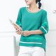 袖子網狀白色線條前短後長上衣 / 綠色 透氣舒適,夏秋皆宜