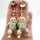 **手工製 超輕巧巨型娃娃頭珠片夾耳環 綴茶色施華洛水晶 需時訂製**