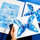 Monotype is a type of printmaking that envolves drawing or painting on a smooth, non-absorbent surface. After that, the image is transferred onto a sheet of paper by pressing the two together, usually using a printing press, but I print by hand. Each artwork represents an abstract composition created with acrylic inks. During printing, the inks blend together into unique textures and patterns.