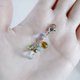 写真のしずくビーズの色合いは太陽が当たっている時に見えるパープルっぽいブルーに映っておりますが、蛍光灯の下などではライトブルーに見えるので色の変化なども合わせてお楽しみ頂けたらっと思っています☺