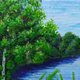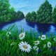 這幅畫作傾注了我的心血,注重每一個細節,誠摯邀請您駐足片刻,遠離城市的喧囂。我試著捕捉夏日裡轉瞬即逝的美好瞬間:空氣中瀰漫著河水的清新氣息,四周一片寧靜祥和,陽光在河岸的彎道上跳躍閃爍,唯有在靜謐的時刻才能看到這般景象。每一朵雛菊、每一根草葉、每一棵樹木,都是我親手繪製,散發著純淨與質樸的氣息,將您的家變成一片舒適與光明的綠洲。