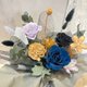 永生玫瑰、索拉花、永生葉材等,素材會依色系略有調整