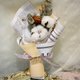 由棉花、小南瓜以及其他花材搭配。(缺少時會更換使用其他花材代替。)