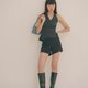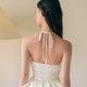 這款綁脖上衣為均碼設計,胸圍可彈性延展至 36 吋,背部採鬆緊設計。