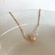 最小直徑11.2mm天然淡水橘色巴洛克珍珠呈現出橘子汽水一樣的美好色彩和味道,紗織小姐為突出珍珠的天然美感為其以 S 925銀表層14K注金配件搭配,用龍蝦扣連接,長度約16.5~17mm,另在腕間垂下一條延長鏈和一枚小心心,精緻感立現,帶給你巴洛克的天然美。
