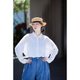 夏末的白襯衫,干淨致及。翻領,友好的領型,既有中性的率真,也不失柔的線條。開門襟至底,紐扣有意選擇更明亮的白,質朴之下是潔淨。落肩式長袖,袖剋夫與長袖,結合大身的寬度與長度,正好帶來一種隨意的慵懶感,寬松當中有自得其樂的高級和陰柔,就連隨身出來的皺感,都份外迷人。