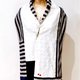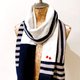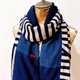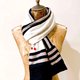 規則中不對稱的撞色設計,讓整件作品呈現輕鬆愜意的氛圍;圍巾上搶眼的紅色Swarovski成對愛心和圍巾末端飽和的紅色水晶地球珠,讓整體更增添一份甜美的趣味。