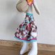 The sheep is made of linen and terry cloth, stuffed with a high quality hygienic hollow fiber. The toy is made in the technique of tight stuffing, which allows the toy to stand and sit on their own. The arms and legs are movable. No metal parts or wires are used in the construction of the toy.