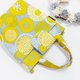 【朵朵袋蓋托特包】日本煙花海藍-手提側揹包 含側揹帶 手作禮物 - 側背包/斜背包 - 棉.麻 黃色