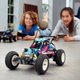 用樂高® 越野車(42124)拼砌組合解開長時間的樂趣。這款遙控越野車受到 1980 年代玩具遙控車始祖啟發,滿載相似特色。• 車身搭載前後懸吊系統、巨型輪胎、正面傾斜設計,便於展現精采特技。• 下載 CONTROL+ 免費應用程式,為這輛遙控越野車加入全新特點。用此應用程式操控玩具車、表演特技,以及開啟挑戰、音效等等。• 這款越野車是適合 10 歲以上孩子的超讚禮物。還記得 1980 年代經典遙控玩具車的大人也會喜愛這款模型,讓它成為每個世代都能一起享受的趣味體驗。• 查看復古配色與取材自 1980 年代的貼紙細節。• 此遙控越野車模型到車頂高逾 13 公分、含天線高逾 19 公分、長逾 28 公分、寬逾 16 公分。• 您需要 6 顆 LR6/AA 電池(未附)以享受此應用程式遙控玩具的所有特色功能。• 樂高® 科技系列宇宙為準備好接受下個拼砌挑戰的樂高粉絲帶來進階拼砌玩具。• 樂高® 科技系列零件從 1958 年至今都符合嚴格的業界標準,確保它們保持一致、彼此相容,而且每次都能確實組合。• 樂高® 科技系列零件經過拋落、加熱、碾壓、扭絞與分析,確保它們符。