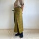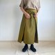 此裙款參考了西藏裙的設計,由四塊方形布料組合而成,結構簡約。透過繫緊側邊的綁帶以調整腰圍,並將多餘的布料在前側打結。其中一側的綁帶使用鈕釦,您可以根據自己的腰圍調整鈕釦的位置。