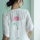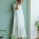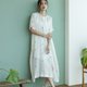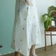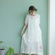 Jamdani織紋蓮花刺繡短袖長洋裝 - 洋裝/連身裙 - 棉.麻 白色