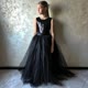 黑色薄紗公主裙、高級訂製女童禮服、閃亮兒童晚禮服、優雅的女童禮服、奢華的兒童舞會禮服、手工設計師禮服、兒童高級訂製服、女童黑色晚禮服