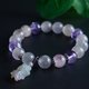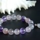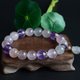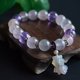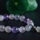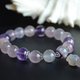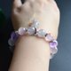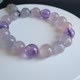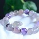 這款超七水晶單圈手串,珠子直徑接近12mm,大小適中,佩戴舒適。手串的珠子由超七水晶製成,質地細膩溫潤,晶體潔淨,半通透,內部發絲狀的礦物包裹體清晰可見,或如金絲纏繞,或似銀線穿梭,呈現出獨特的紋理與光澤。每一顆珠子都像是大自然精心雕琢的藝術品,色彩豐富且過渡自然,紫色的濃郁神秘、粉色的溫柔甜美、紅色的熱烈奔放,灰色的沉穩內斂相互交織,彰顯出超七水晶獨有的魅力。