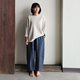 日本先染後織棉麻布料 厚度為中等 深藍布面多了白色織紋 顯得有趣 褲管利用打摺方式縮口 有挺度的布料 讓線條呈現更加有趣 一定要有的口袋有3個(前左右各1個和後1個) 設計館內的亞麻布料大部份都可製作,但處理法和布性的差異成品的效果也會不同,如對選色或布料有任何疑問歡迎與我們溝通! 材質: 亞麻 25% + 棉 75% 尺寸: 腰圍 34-52 / 臀圍 59 / 前檔長 41 / 後檔長 45 / 褲管24 / 褲長 85 ( 單位:公分 以上尺寸皆平放量測 手作尺寸+/-2公分) 說明: 因褲子使用高強力鬆緊帶,請於訂購提供您實際量測的腰圍尺寸,以便調整為您舒適的寬度長度! Model: 157cm / 48kg 棉麻衣服洗滌方式: - 深淺色衣物請分開洗滌。 - 建議冷水手洗,請勿大力搓揉且長時間浸泡(建議不要超過20分鐘)。 - 洗淨後稍微脫水(請勿超過3分鐘),將衣服直接"反面"晾起,將衣服拉整平順晾乾即可。 - 在陰涼通風處晾曬即可,勿長時間直射太陽。 - 使用中性清潔劑,勿使用含有漂白劑與螢光劑的洗衣精。 - 深色綿麻質商品前幾次下水容易有掉色現象,初次洗滌可加醋定色。長期洗滌後會減少脫色情況,且會更加柔軟。 - 若要機洗,請務必使用洗衣袋。 注意事項: 寄至大陸/香港/澳門一律使用順豐快遞運送,如需改為郵局寄件,請先詢問,會特別開專屬賣場再行下標,謝謝。 確切寄出時間以訂單先後排序為原則,下標前可先詢問預計出貨日期,不接受急單訂製。 手作衣物非工廠大量生產 要求完美者請勿下標。 布料進貨批次不同顏色也會有差異,每台電腦螢幕顯示器不同,呈現出的照片顏色多少有落差,請以實品為準,如對顏色布料材質有任何疑問,請先詢問勿直接下單。 產地/製造方式 台灣 / Feliz & Recap 親手製作