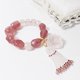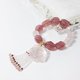 嚴選清透、閃砂金光的草莓晶,相佐極度淨透星光粉晶玫瑰,精工編製粉晶;紅寶石、草莓晶流蘇,呈現華麗時尚質感,每個角度都相當甜美迷人,滿溢時尚美麗的戀愛風情,並有助事業、招桃花、好人緣之意。