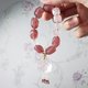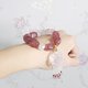 **1.圖上草莓晶珠約長16.5mm、寬14.5mm,星光粉晶玫瑰長約3cm、厚13mm,墜飾(含玫瑰、流蘇)整體長6.5cm,整體手圍約14.5cm。