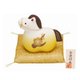 豪華底座: 生肖馬安穩地鎮座於豪華的金色座墊(金のザブトン)之上,姿態莊嚴,散發出招福納財的神聖感,特別適合用於新年的開運擺設。