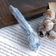 **◆ **藍晶石是斜方晶系,晶體呈扁平的板條狀跟柱狀,集合體呈放射狀,晶面會有平行的條紋。