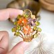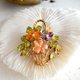 **復古鍍金托多色水晶花卉胸針 高貴優雅 日本二手中古珠寶首飾古著**