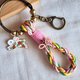 臘線編織鑰匙圈。花花兔子