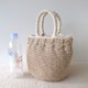 貝殻のような模様編みと、ざっくりとしたナチュラルな麻の風合いが夏らしく軽やかな印象です。