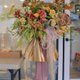 - 紅與金交織的高架花籃,展現大器與祝福的絕佳平衡。