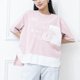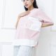 粉紅色電銹異材質拼接上衣 粉紅色 - 女 T 恤 - 其他材質 粉紅色