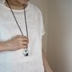 首からかけたまま使用できるように80cmと長めの紐にしています。