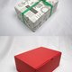 ●赤い箱に入れて、フランス新聞紙風のラッピングをして緑のリボンをかけます。