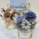 - 寧靜霧霾藍手提永生盆花-很迷人的顏色,寧靜、沉穩、知性又優雅。整體尺寸:寬約17cm、高約21cm。