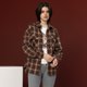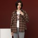 【I'care】棕色法蘭絨雙口袋格紋襯衫