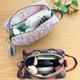 - 這是一款附提把的便利絎縫收納包。 即使放入行動電源等硬質物品,也能安心使用。 內裡採用防潑水布料,即使化妝品沾染,也能輕鬆擦拭乾淨。