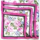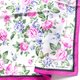 - Vintage handkerchief is made of quality cotton, lightweight fabric. Beautiful floral print, pink and purple roses are blooming on white background, decorated with golden pattern as border. Rolled hem by hand. Really cute. ♡ A wonderful for yourself or as a gift for someone.