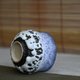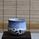 此茶碗以掌中大小設計,握感穩妥舒適,適合日常品茗。外壁以藍白交融的志野釉展現自然流動之美,宛如冬雪初融、藍雲映照山嶺的景致。其間點綴如蟲蛀般的黑色肌理,為高溫窯燒中釉藥自然生成的粗獷痕跡,營造出獨一無二的氛圍。