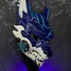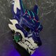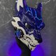 紫白配色的賽博朋克狐面具以高強度、低致敏樹脂手工製作,並以壓克力手工上色,最後以霧面環氧塗層完成。面具內部有柔軟的襯墊,並配有寬肩帶與彈力繫帶,佩戴穩固又舒適。