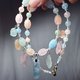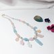 嚴選頂級綠柱石(海藍寶、摩根石),保留原始礦型,並精工雕製吉祥回紋珠飾,寶石水光透亮、色調柔美,繽紛彩虹馬卡龍色安排編製鍊身,優雅細膩環繞胸前,展現女性大器、華麗浪漫之情。