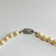 こちらはガラス素材のバロックビーズに、オリジナルパール塗料にて何層にも渡り重ね塗りを施した日本製ガラスバロックパールネックレスになります。1つ1つ丁寧に結び目を加えたオールノット加工にて仕上げました。パールカラーはきめ細かい質感と優しい艶感が特徴のアプリコットクリーム色。ほのかに赤味を感じる落ち着いた色合いとなっております。こちらのガラス製バロックパールは、表面の凹凸が緩やかで個体差のあるフォルムが特徴となっております。サイズは直径約7.5mm~8mm、長さは服の上からでも手軽に着けられる全長約90cmで仕上げました。クラスプには、中央に1粒ラインストーンを付けた差し込みタイプを使用。